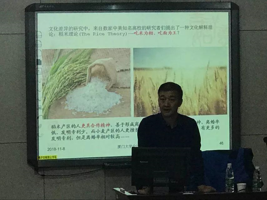 最有趣的是教授从是否吃辣,主食是米还是面等的差异上,用研究表明了饮食差异对人的行为的深刻影响。