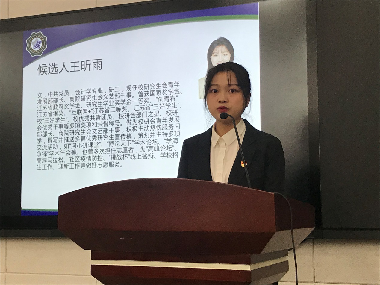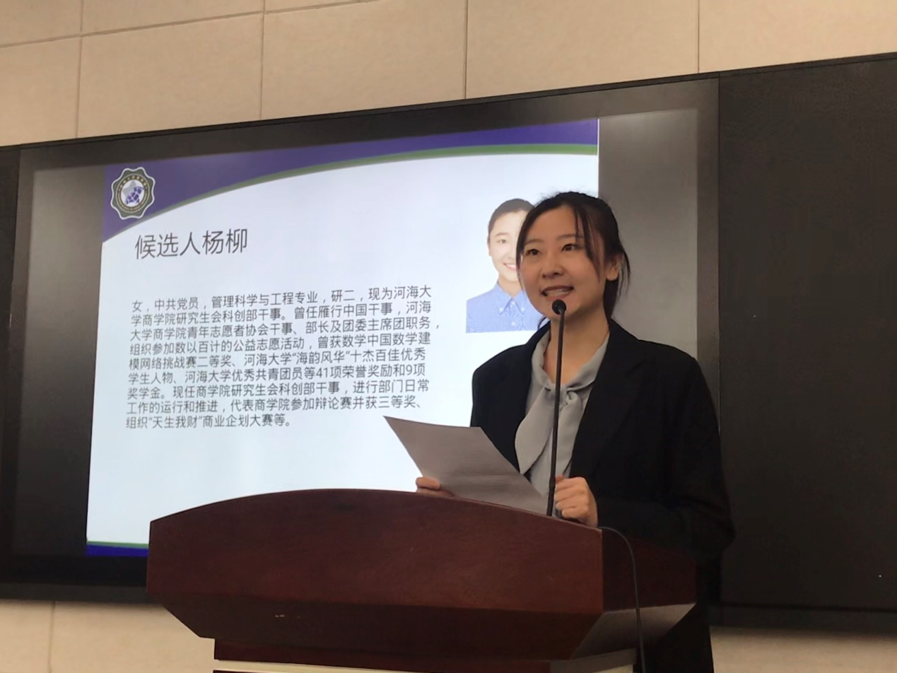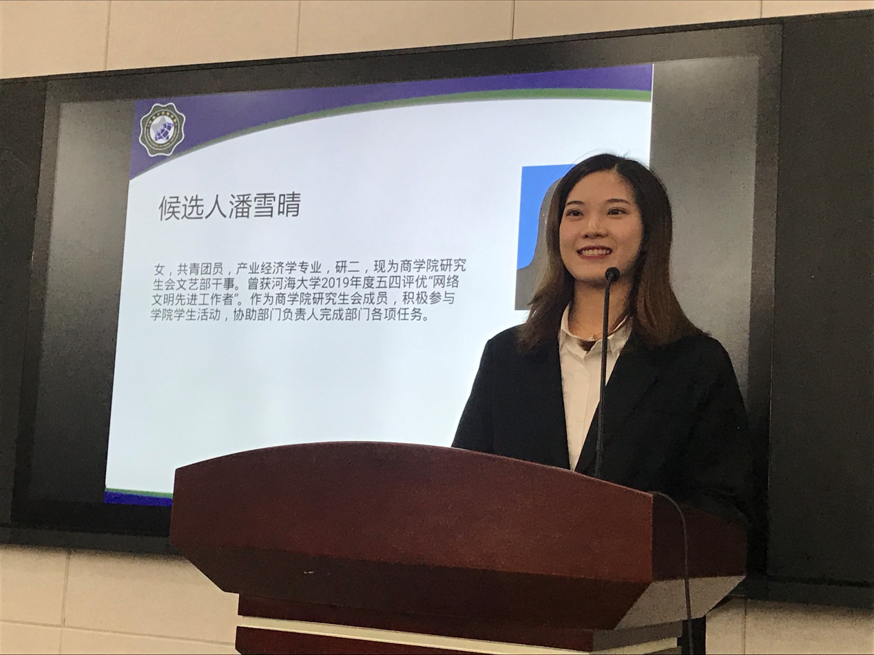 11月5日中午,河海大学商学院在博学楼A100召开了第二十四次研究生代表大会。三级片 团委书记陈璐老师、研究生辅导员于陶老师、伏方霓老师、张婧老师、校研会代表杨一帆同学,以及53名研究生代表参加了大会。