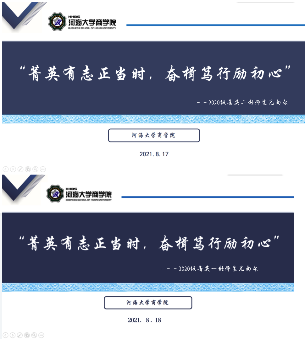 2021年8月17日、18日,2020级菁英一、二班分别在线上召开了“菁英有志正当时,奋楫笃行励初心”师生见面会。菁英一班班导师高辉老师、二班班导师李祎雯老师,三级片 团委书记陈璐老师、2020级辅导员赵晨洁老师以及2020级菁英班全体成员参加本次会议。