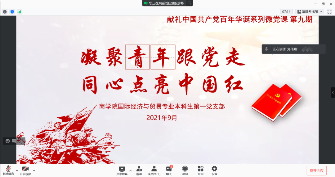本期微党课不仅是新学期的第一节党课,更是党支部联系团支部的一次突破和尝试。通过同上一节党课,党支部与国际经济与贸易、金融工程两个专业团支部之间的联系更加紧密,形成了良好的雁阵效应。