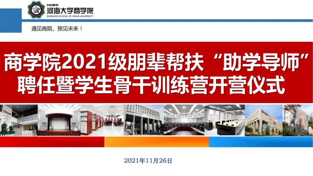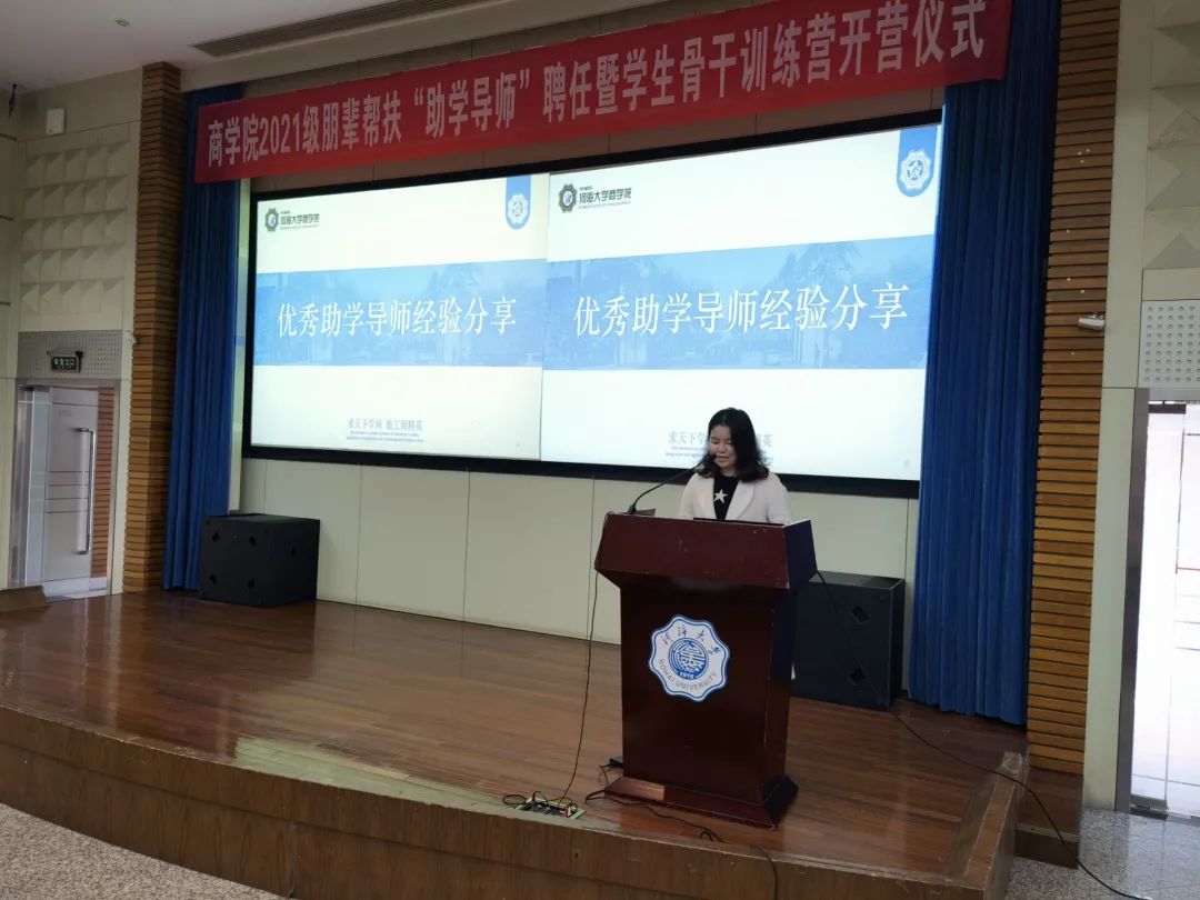 11月26日,三级片 在江宁会议中心举办2021级朋辈帮扶“助学导师”聘任暨学生骨干训练营开营仪式。学院党委副书记戴媛媛老师,团委书记陈璐老师,21级辅导员陈鹏老师、魏俊美老师,21级全体助学导师、学生骨干和积极分子参加了此次活动。活动由魏俊美老师主持。