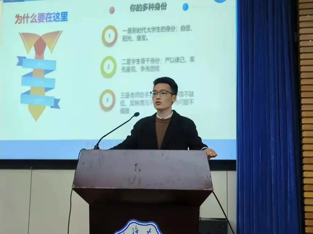 活动第六项议程,学生骨干训练营开营仪式及培训第一讲。陈鹏老师以“如何做好新生学生骨干”为题展开培训第一讲。