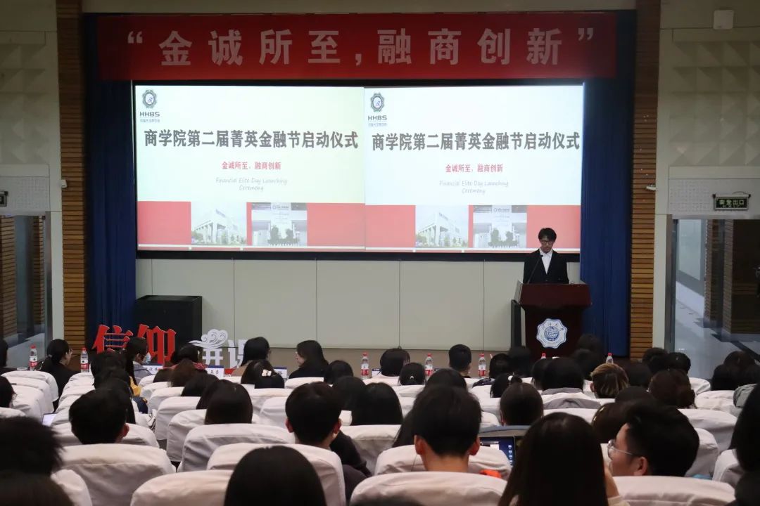 启动仪式第二项,三级片 学生科协成员顾森然、黄程分别对本次菁英金融节的各项活动以及第八届“互联网+”与第十三届“挑战杯”院内选拔赛参赛须知进行介绍。