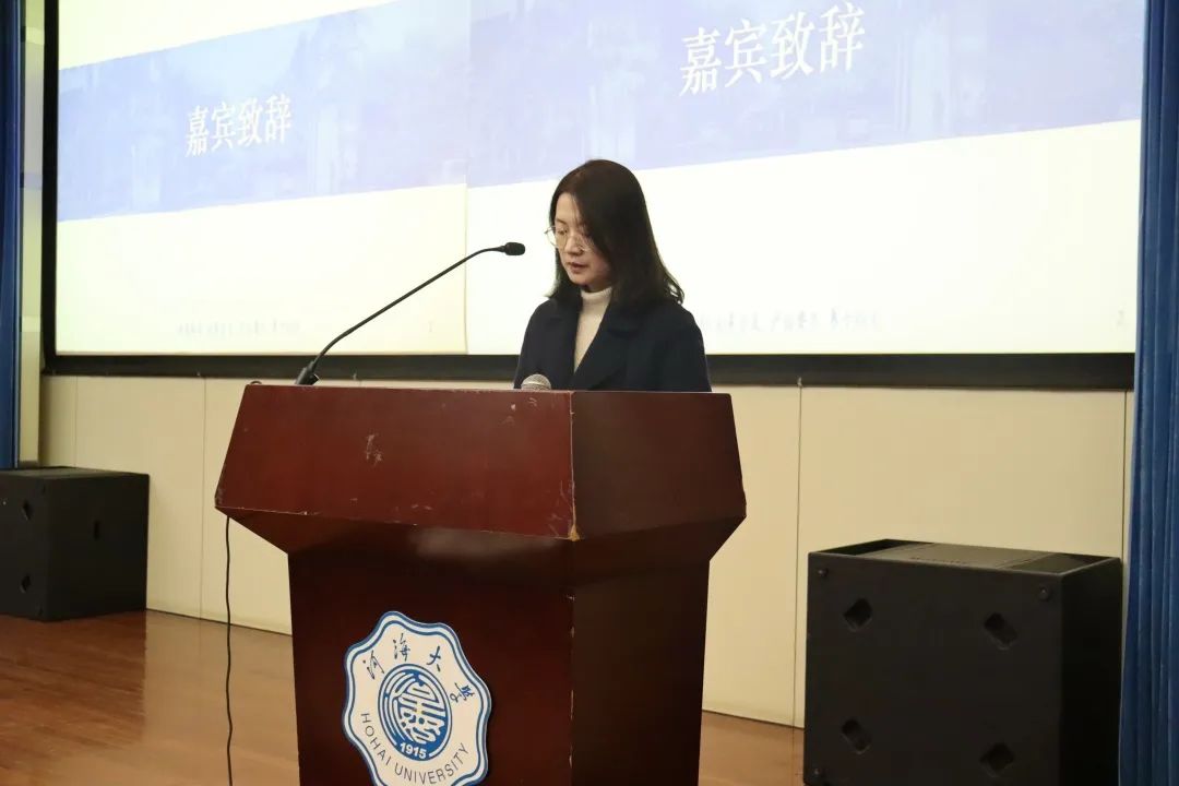 启动仪式第一项,党委副书记戴媛媛老师讲话。戴书记提到,菁英金融节以“金诚所至,融商创新”为主题,致力于为同学们提供发展自我、交流探索、增长才干的平台,同学们要不断提高创新意识和创新能力,为自己展开大学生涯的新篇章。