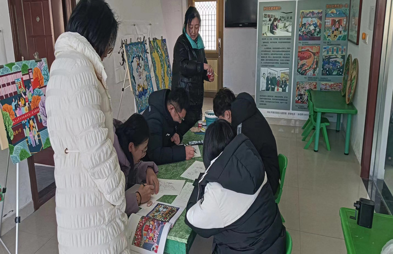 文化传承历史,遗产延续未来;时代是思想之母,实践是理论之源。为深入学习贯彻党的二十大精神,进一步走近农民画,深入了解农民画文化,传承农民画技艺,2024年2月8日,河海大学艺彩乡风实践团拜访了非遗农民画传承人孙云花老师。孙云花老师,一位将乡土情怀融入每一笔、每一划的艺术家,从小酷爱绘画,创作出一系列精湛的农民画作品并多次在农民画比赛中获奖,被江苏省文化馆等机构永久收藏。此外,她还建立了自己的美术艺术工作室,致力于弘扬非物质文化遗产,培养下一代智绘美丽的蓝图。