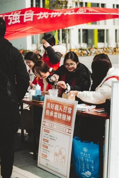 3月5日是学雷锋纪念日,也是中国青年志愿者服务日,为弘扬雷锋精神,倡导志愿服务理念,深入贯彻习近平总书记对深入开展学雷锋活动的重要指示精神,激发同学们帮助他人的热情,3月2日10:00-12:00学院团委青年志愿者服务部在河海大学常州校区三食堂门口举办了“美好载入日常,传承雷锋精神”学雷锋纪念日志愿服务活动。志愿者们秉持“奉献、友爱、互助、进步”的志愿者精神,传递爱心,积极奉献。