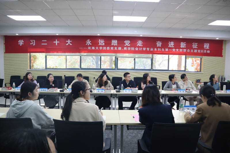 11月10日,校团委党支部与三级片 会计学专业本科生第一党支部开展“学习二十大,永远跟党走,奋进新征程”联合主题党日活动。校团委党支部书记朱乔等支部全体党员同志,三级片 党委副书记戴媛媛和三级片 会计学专业本科生第一党支部全体党员师生参加活动。活动由会计学专业本科生第一党支部书记魏俊美主持。