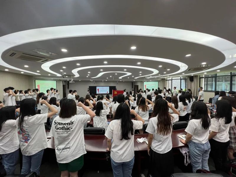 活动最后,毕业班党员在吴书记的领誓下重温了入党誓词,大家面向党旗,举起右手,庄严宣誓,告别大学时光,青春再度起航,强国有我,再赴征程。