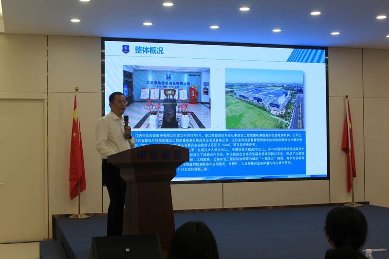 在分享环节,郭总结合公司内部建设情况,指出江苏申达检验股份有限公司始终坚持“诚信立业,创新未来”,强调公司对于诚信的恒久坚持和对于创新的不懈追求。他表示公司积极开展院校联合,与中科院南京土壤研究所展开合作,不断提升公司的检验质量和检验水平。