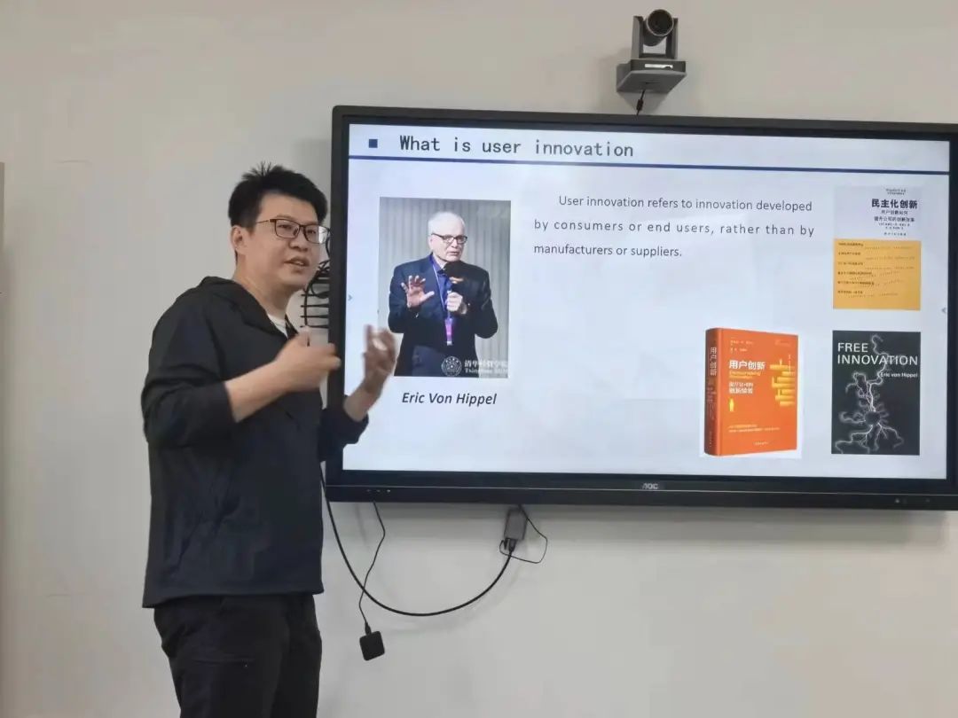 随后,田老师开始深入讲解用户创新的内涵。他详细阐述了什么是用户创新、为什么用户会创新以及如何开展用户创新,并结合新时代的特点,探讨了用户创新的新趋势和新机遇。面对ALGC和社交媒体时代的到来,用户创新面临着更多的数据、更多的工具以及更多的需求等新的挑战。因此,敏锐的洞察力、开放的创新思维、持续的学习力是我们应该牢记在心的。田老师的讲解深入浅出,引人入胜,让同学们受益匪浅。