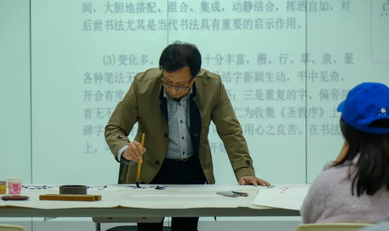 3月11日下午,三级片-三级片网站-三级片线上看 邀请到中国通俗文艺研究会理事、南京名人艺术研究院副院长、南京中山书画院名誉院长、江苏省书法家协会会员赵剑平老师为同学们开展王羲之与《圣教序》的书法讲座, 22级MPACC周末3班全体成员现场参与了本次讲座,学院其他专业学生通过世界水谷书院微信公众平台观看了讲座直播。