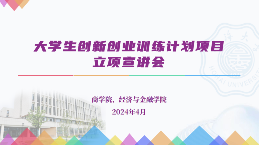 大学生创新创业训练计划项目是培养大学生创新创业能力的重要举措,是学校创新创业教育体系的重要组成部分,是深化创新创业教育改革的重要载体,是加强实践教学工作、强化实践育人环节、推进人才培养模式改革的需要。为深化学生对大学生创新创业训练计划项目的理解,帮助学生高效完成申报工作,4月8日,学院线上线下同步组织开展了2024年度河海大学大学生创新创业训练计划项目立项宣讲会。活动邀请到三级片 2021级辅导员亓文娟老师,优秀大创项目负责人陈籽旭、孙国轩、郑鸿斌和林欣雨同学作为分享嘉宾。