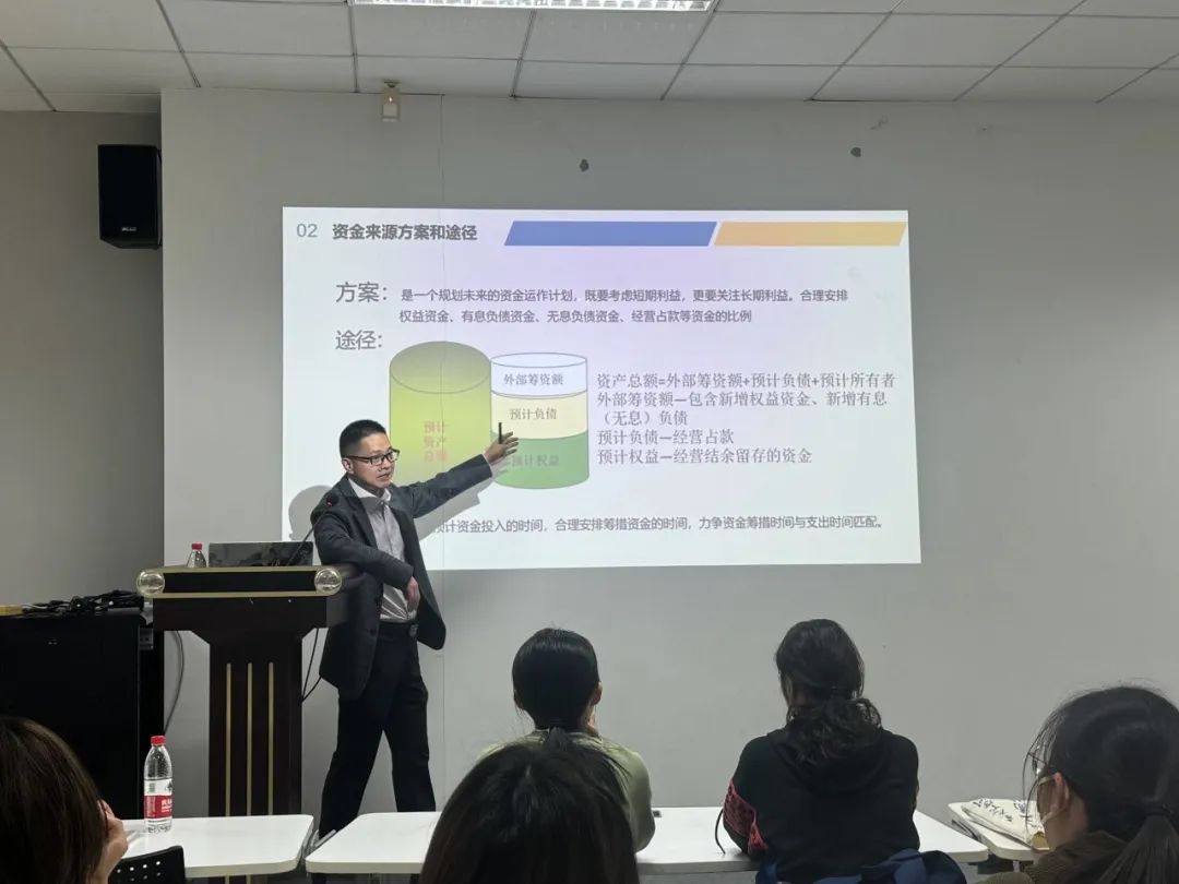 创新创业训练营系列讲座第四期于博学楼A103成功举办。本次讲座邀请到了河海大学优秀校友、工商管理学硕士、中国注册会计师饶栋平老师作为主讲老师。饶栋平老师曾任会计事务所高级经理,财会理论与实践经验丰富,他就商业计划书的撰写和财务分析对营员们进行了系列指导。