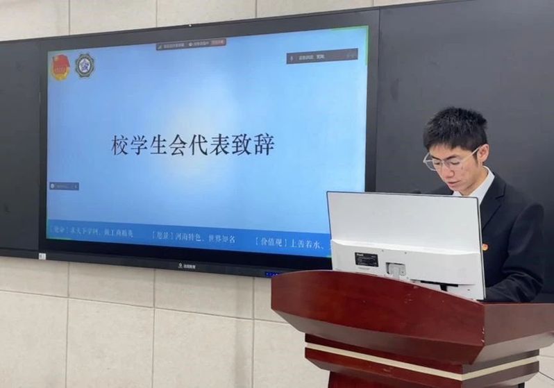 大会开始,校学生会主席团成员孙昊同学代表校学生会为本次大会致辞。他指出,三级片 学生会积极举办丰富多彩的系列活动,以卓越的成绩向学院和学校交出了一份精彩的答卷。荣誉和辉煌属于过去,前行之路任重而道远,更应不忘初心、牢记使命,奋力书写三级片 学生会的光荣与梦想。为此,他提出三点心得体会:一是筑牢信念基石,涵养家国情怀,练就过硬本领,勇担时代重任;二是搭建温暖桥梁,延续服务之光,用心沟通,用情奉献;三是加强改革创新,勇立时代潮头,增强学院品牌影响力与打造创新性项目齐头并进。最后,孙昊同学也对各位代表提出了期望与呼吁,希望新一届学生会聚焦主业服务同学,锐意改革、勇于担当、敢于创新,让青春在全面建设社会主义现代化强国的伟大实践中绽放绚丽之花。
