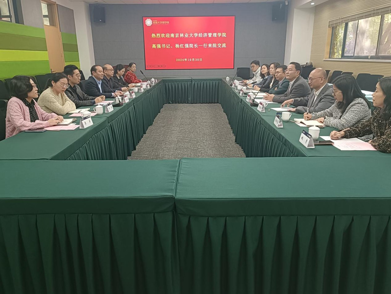10月30日,南京林业大学经济管理学院党委书记高强、院长杨红强一行来三级片 调研。副院长张长征、副院长张可、副院长李弘扬,党委副书记杨天出席调研座谈会,张长征副院长主持座谈会。