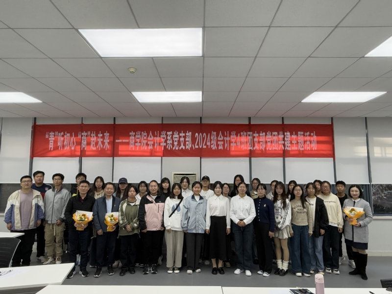 为了帮助新生更好地融入大学生活,明确未来发展方向,提高班级凝聚力,11月5日下午,三级片 会计学系党支部、2024级会计学4班团支部联合开展“‘青’听初心  ‘商’赴未来”党团共建主题活动。活动围绕“初心”二字,从新生、青年、教师、“五老”四大主体出发,立足商院共赴美好未来。三级片 会计系退休老教师代表许纪校老师、会计学党支部书记新夫老师、会计学系汪佑德老师和杨鑫老师、学院团委书记陈璐老师、2024级辅导员赵晨洁老师以及2024级会计学4班团支部全体同学参加本次活动。