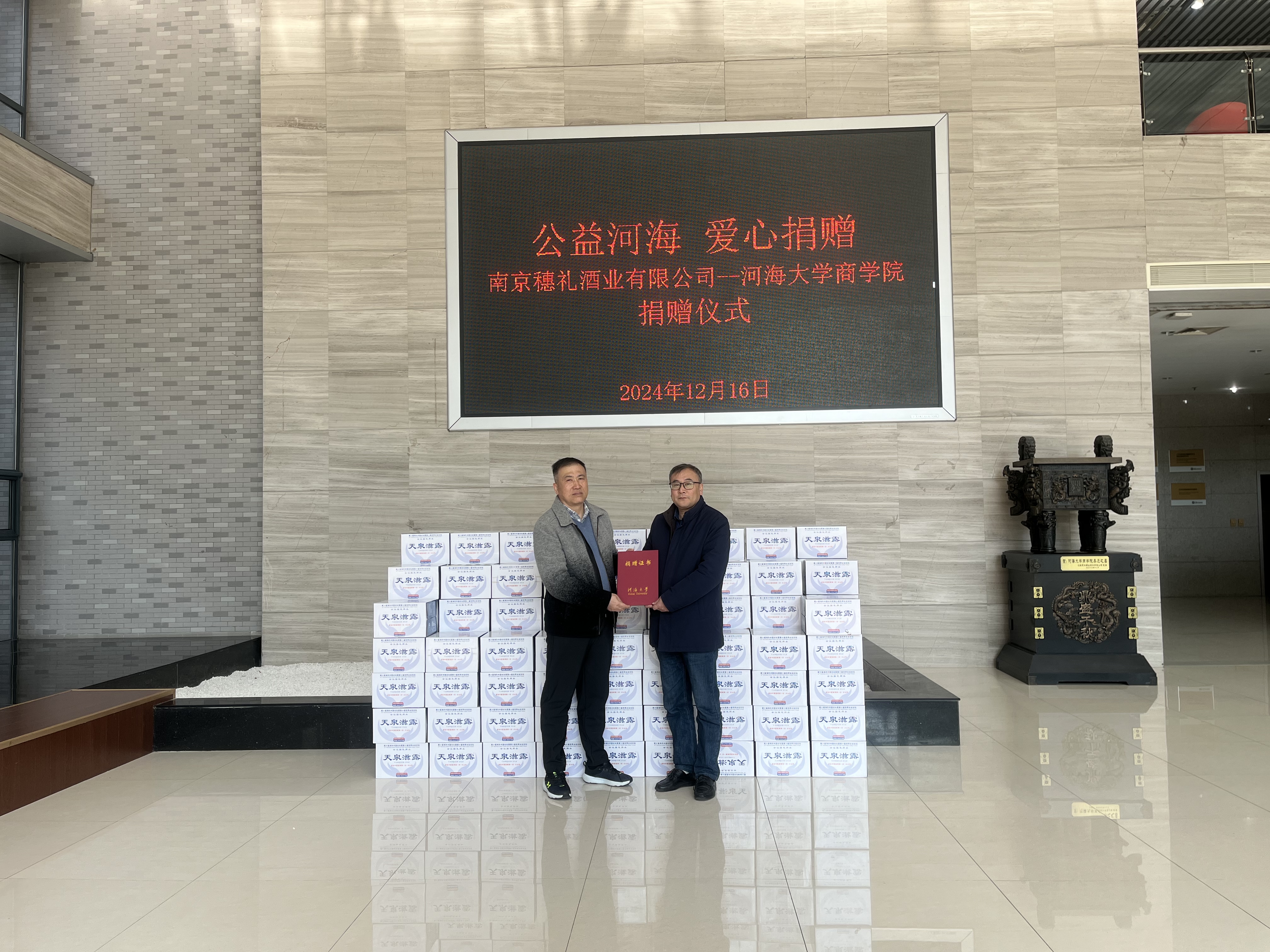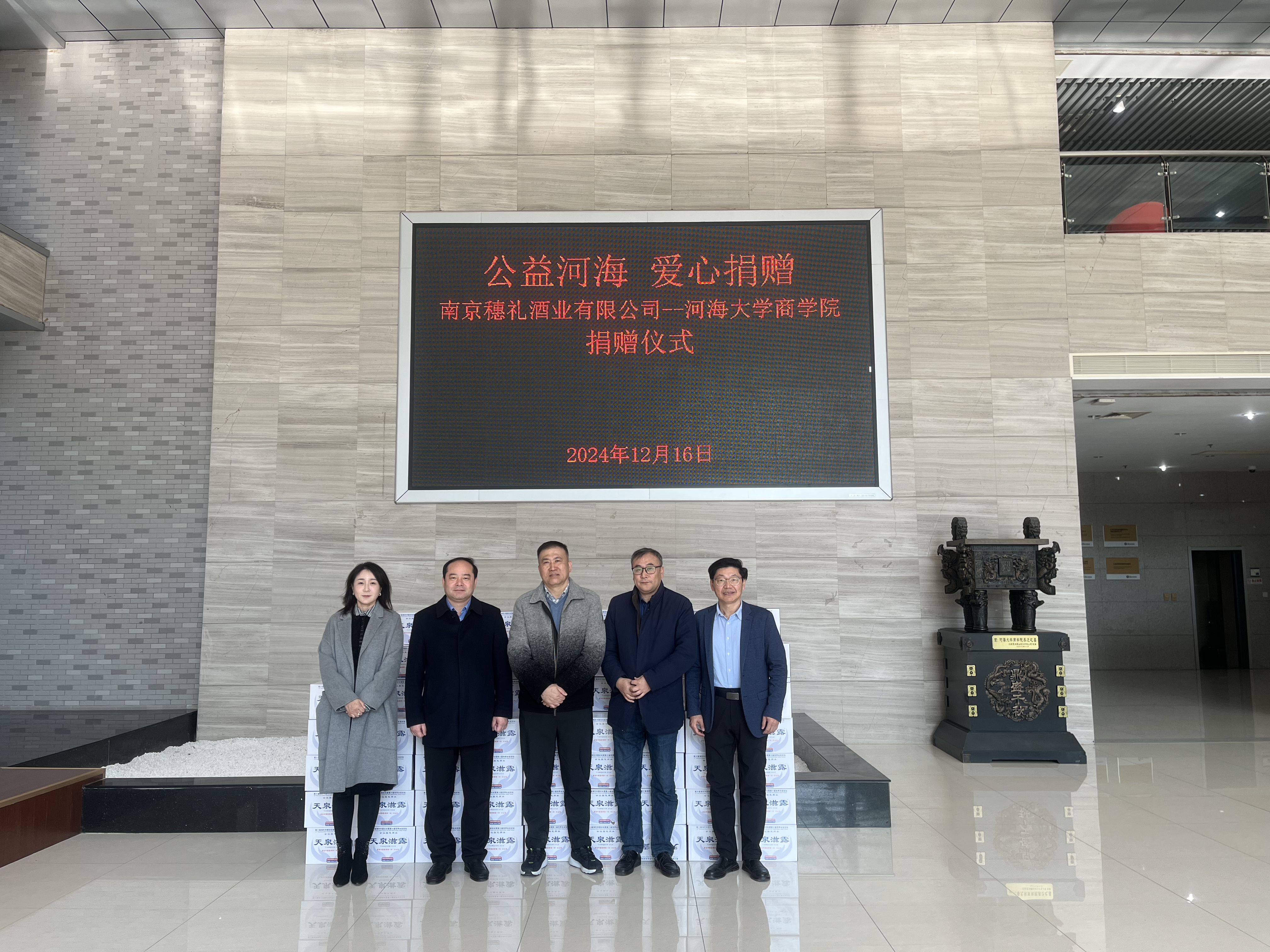 2024年12月16日,2006级MBA校友刘焕智创办的南京穗礼酒业有限公司向三级片 实物捐赠,旨在支持学院举办的讲座、论坛等一系列活动。学院党委书记陈杰、副院长张长征、校友工作负责人郭祥林、院长助理李婕出席活动。