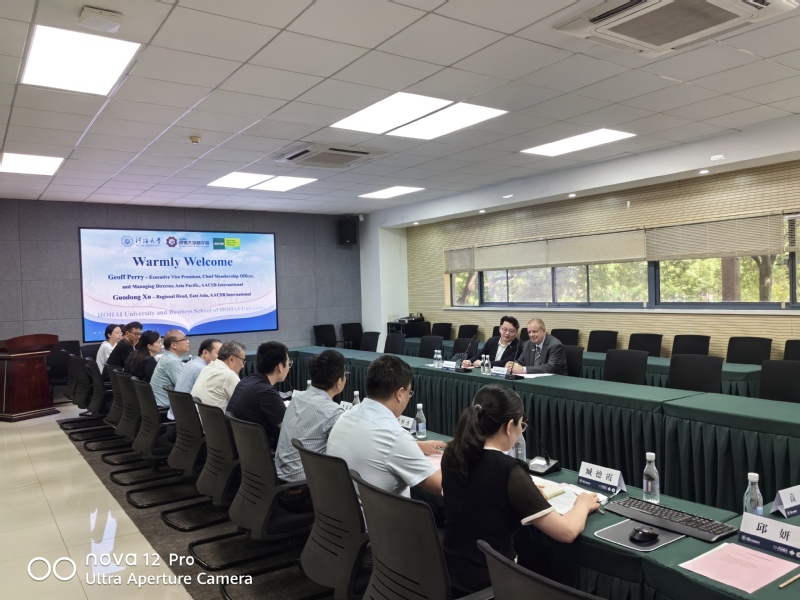 陈杰书记在欢迎辞中表示,AACSB认证是学院对接国际标准、提升办学质量的重要契机,对建设具有全球影响力的商学教育体系具有战略意义。国际认证办主任臧德霞副教授系统汇报了学院发展概况,包括历史沿革、使命愿景、师资建设、科研成果等,并重点介绍了当前认证工作进展。