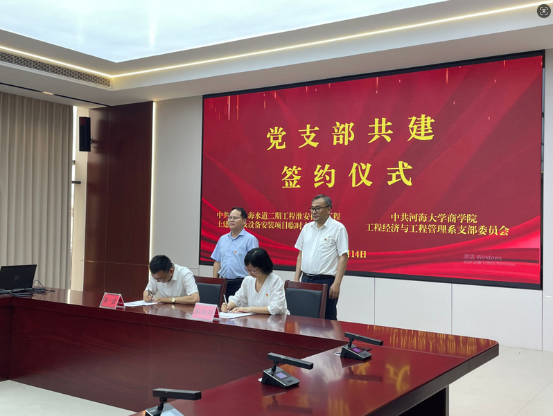 为进一步以高质量党建推动校企产学研深度融合,引领工程管理专业数智化创新发展,2025年6月14日,学院工程经济与工程管理系支部赴淮阴水利建设有限公司开展“党建引领强专业,校企协同育英才”开展共建活动。工程经济与工程管理系支部与水建公司淮河入海水道二期工程淮安枢纽工程土建施工及设备安装项目临时支部签约共建,双方围绕支部共建、人才培养、科研合作等领域开展深入交流并达成“资源共享、优势互补、互通互融、注重实效”的共识。支部成员考察了淮河入海水道二期工程施工现场、苏北灌溉总渠工程、淮安枢纽智能建造控制中心和钢筋智慧加工中心等。河道交织、货船穿梭,亚洲最大“水上立交”的壮丽雄姿令人惊叹;建筑机器人、智能挖掘机引导系统、混凝土云工厂等一系列以人工智能为核心的智能建造控制技术,钢筋加工自动上料、数控剪切等多条全自动化生产线和全流程数字化管控系统,充分展现了工程施工中以科技创新赢得未来发展的领先优势,以数智技术提升施工效率与安全性。