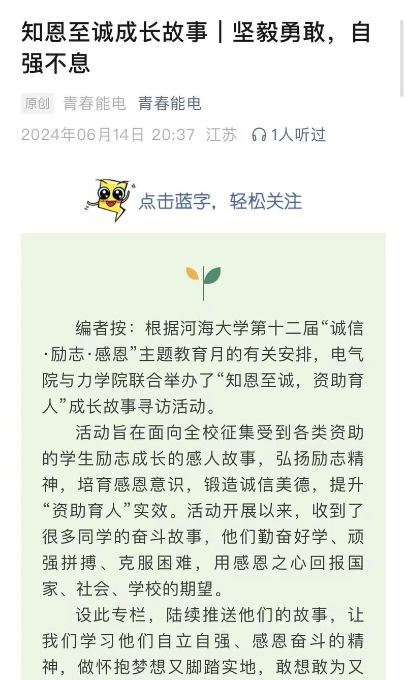 近日,江苏省教育厅办公室发布《关于公布2025年“苏乡永助”资助育人主题活动结果的通知》,三级片 2022级本科生张金亿同学获得“江苏学生资助宣传大使”称号。下面让我们一起走进她与资助政策宣传的故事!