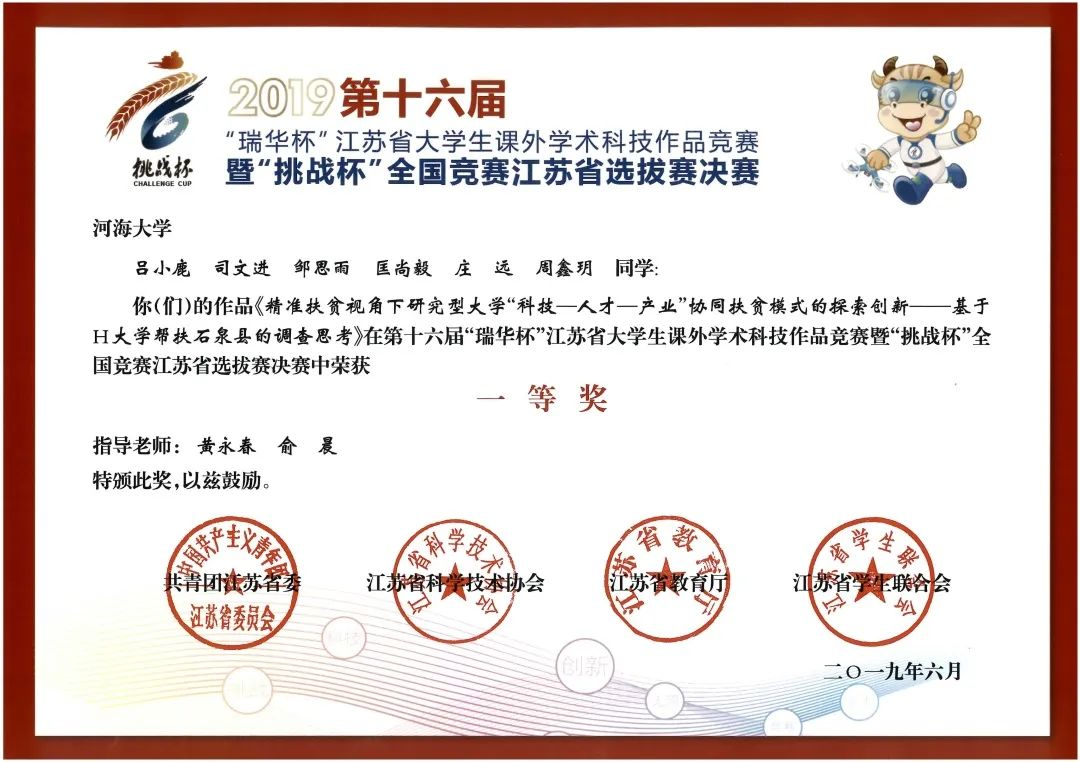 此外,庄远积极参加创新创业活动,主持两项国家级大学生创新创业计划训练项目,荣获“挑战杯”江苏省大学课外学术作品竞赛一等奖、“武进杯”江苏省大学生职业规划大赛一等奖、“力行杯”江苏省大学生社会实践大赛三等奖等,目前已申请实用新型专利、计算机软件著作权两项。